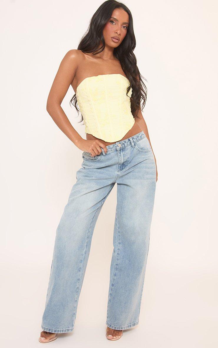 Bandeau Lace Up Back Corset Top In Yellow Applique Lace