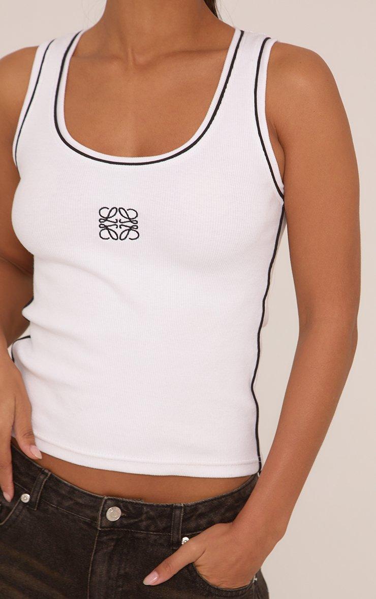 Scoop Neck Contrast Swirl Detail Sleeveless Vest Top In White