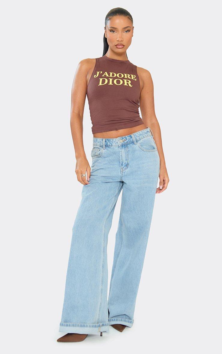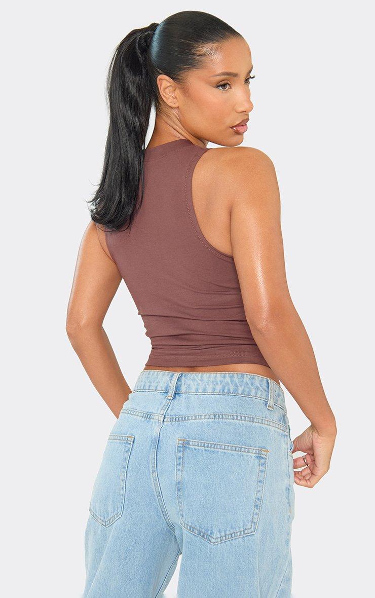 racer neck slogan print detail vest top in brown