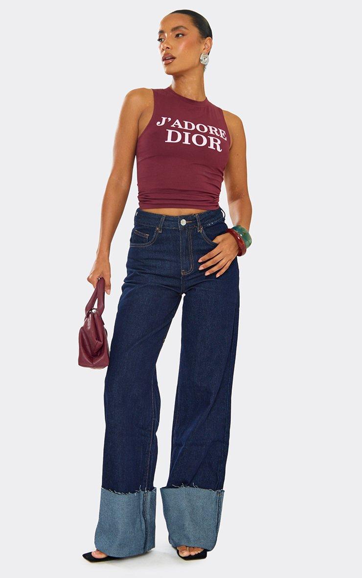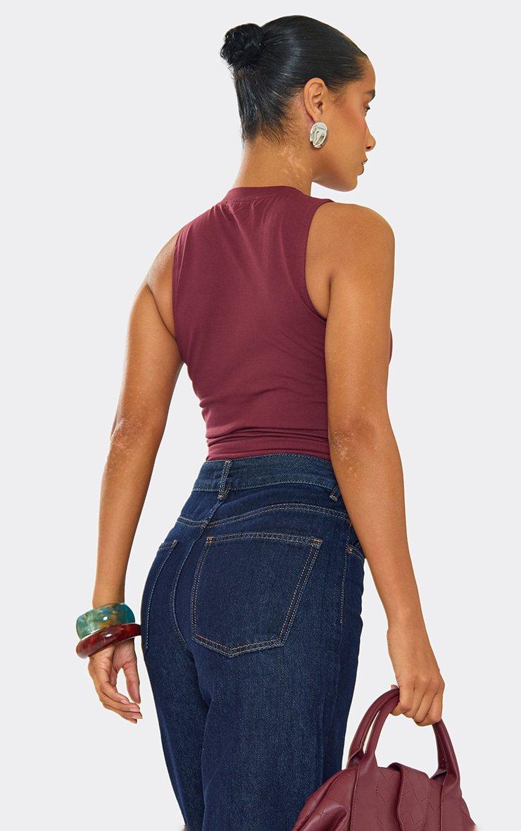 racer neck slogan print detail vest top in burgundy