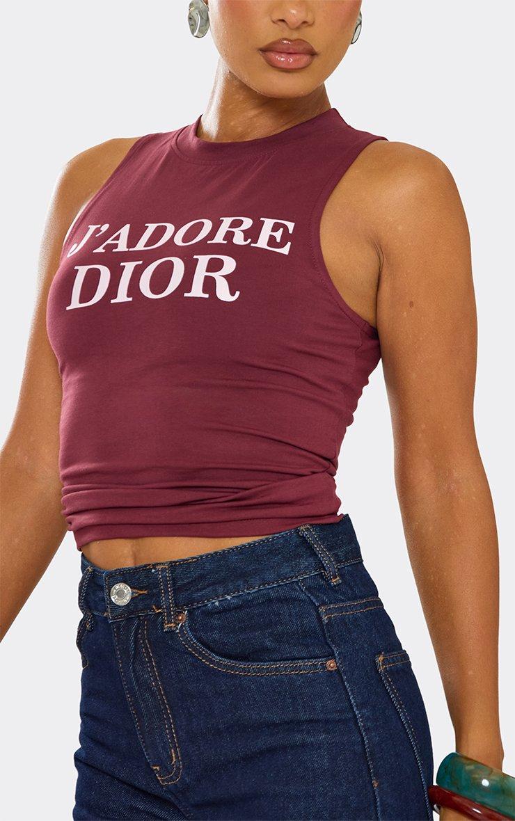 Racer Neck Slogan Print Detail Vest Top In Burgundy