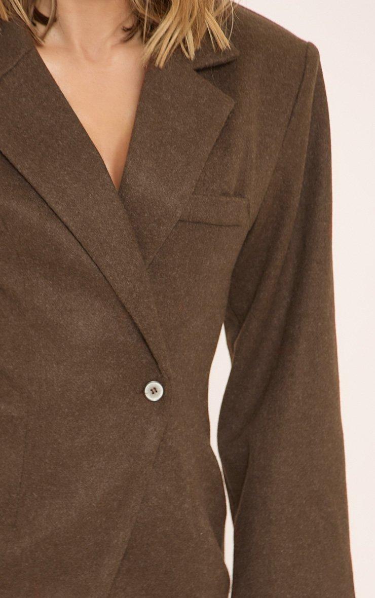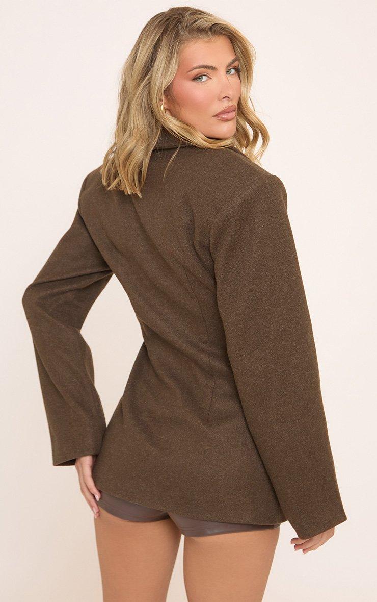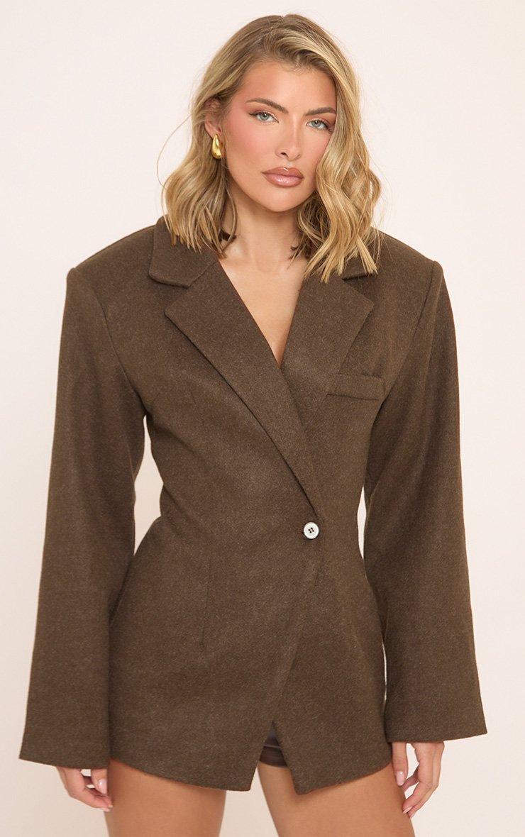 Long Sleeve Cinched Waist Wool Look Blazer In Brown