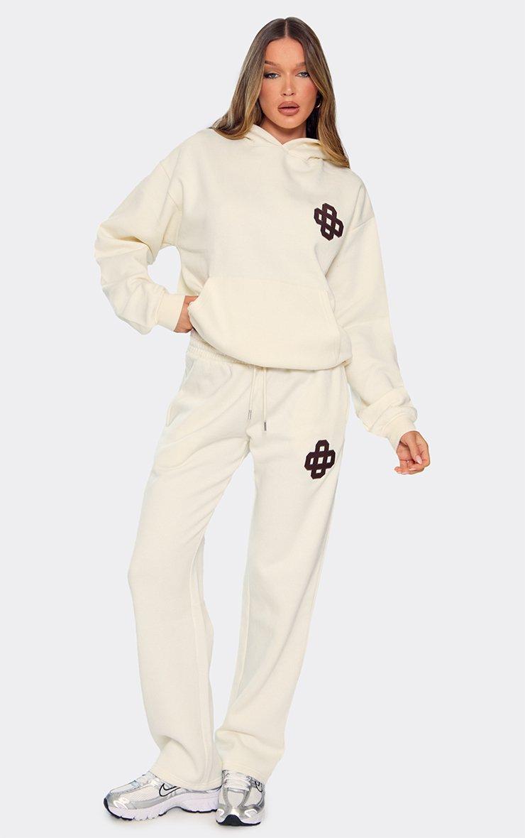 Long Sleeve Zip Up Graphic Detail Hoodie In Cream