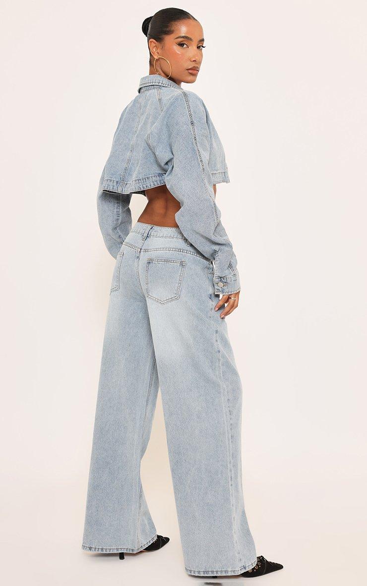 Extreme Low Rise Wide Leg Jeans In Light Blue Denim