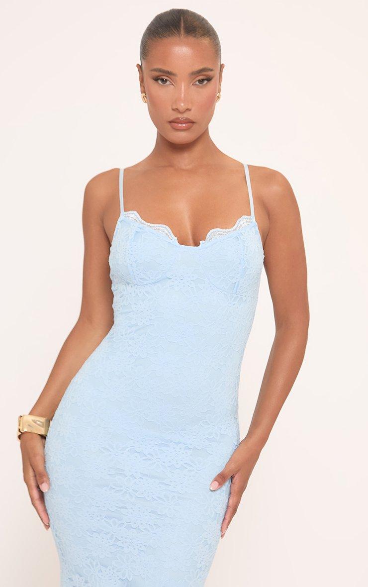 Strappy Cupped Detail Maxi Dress In Blue Lace