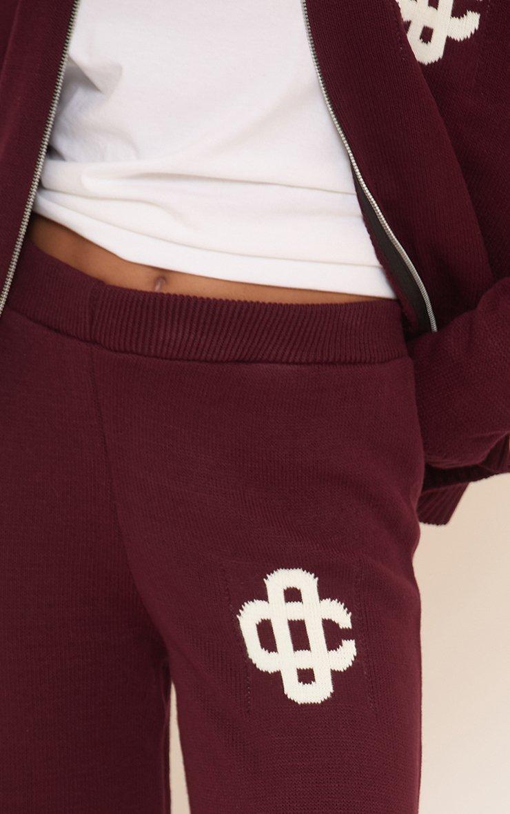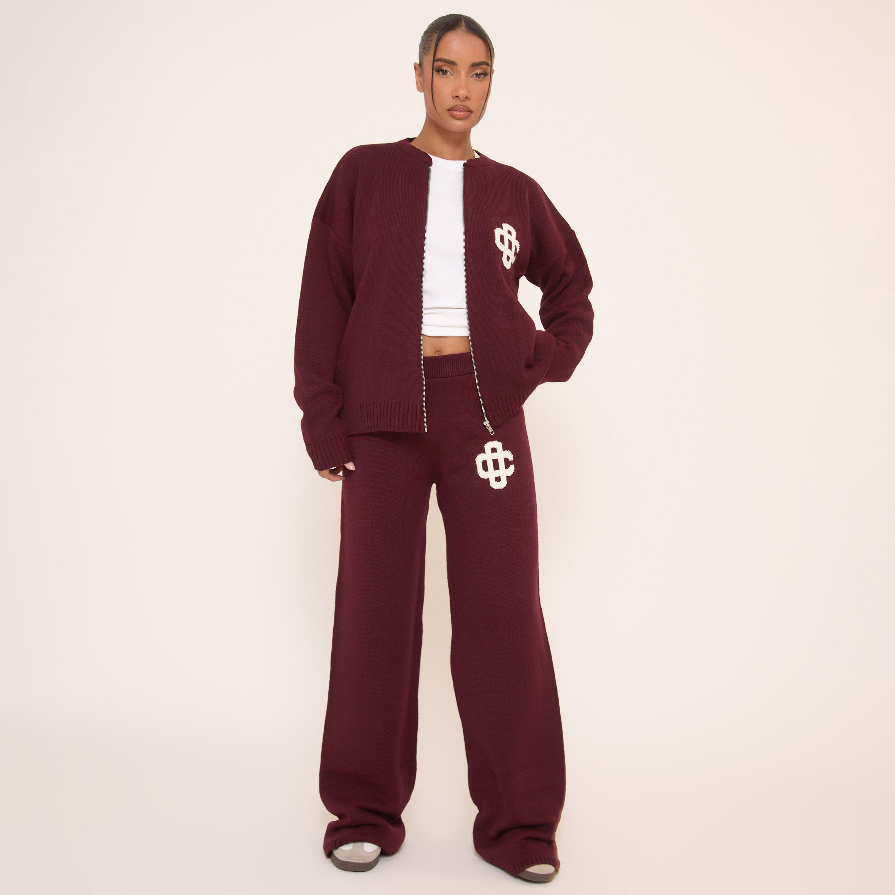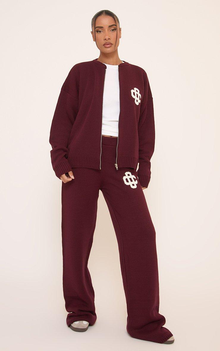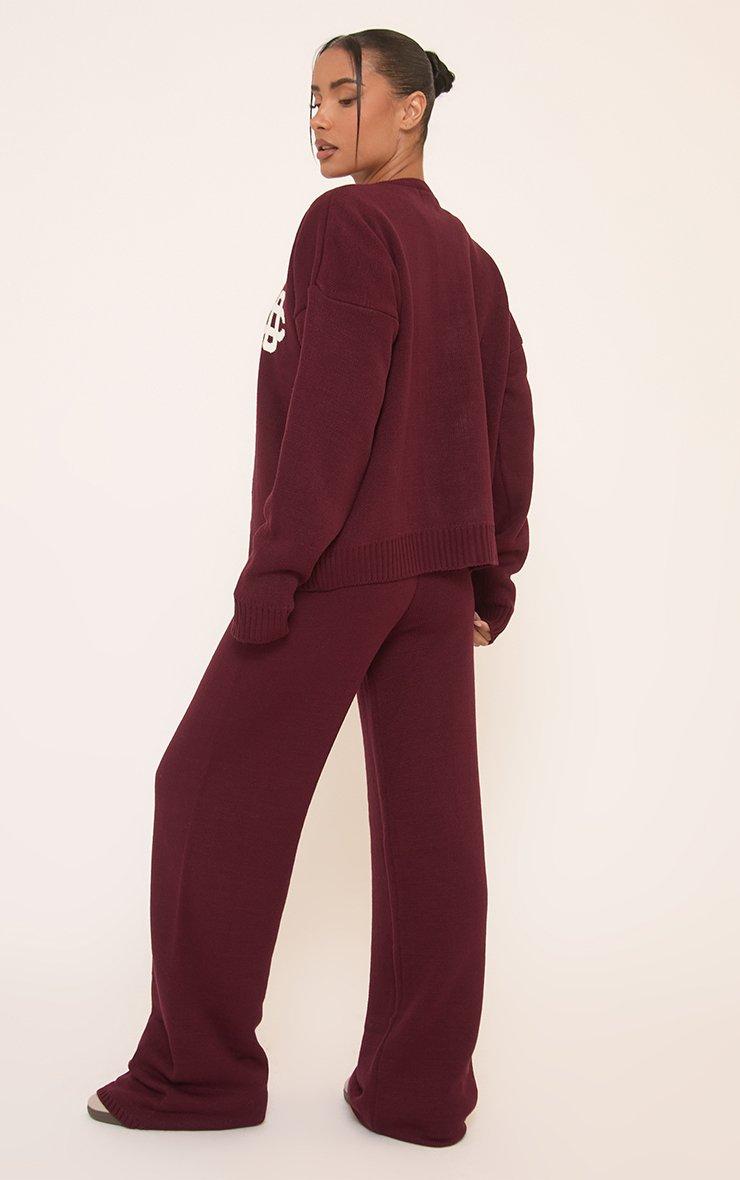 Mid Waist Ego Graphic Straight Leg Trousers In Burgundy Knit