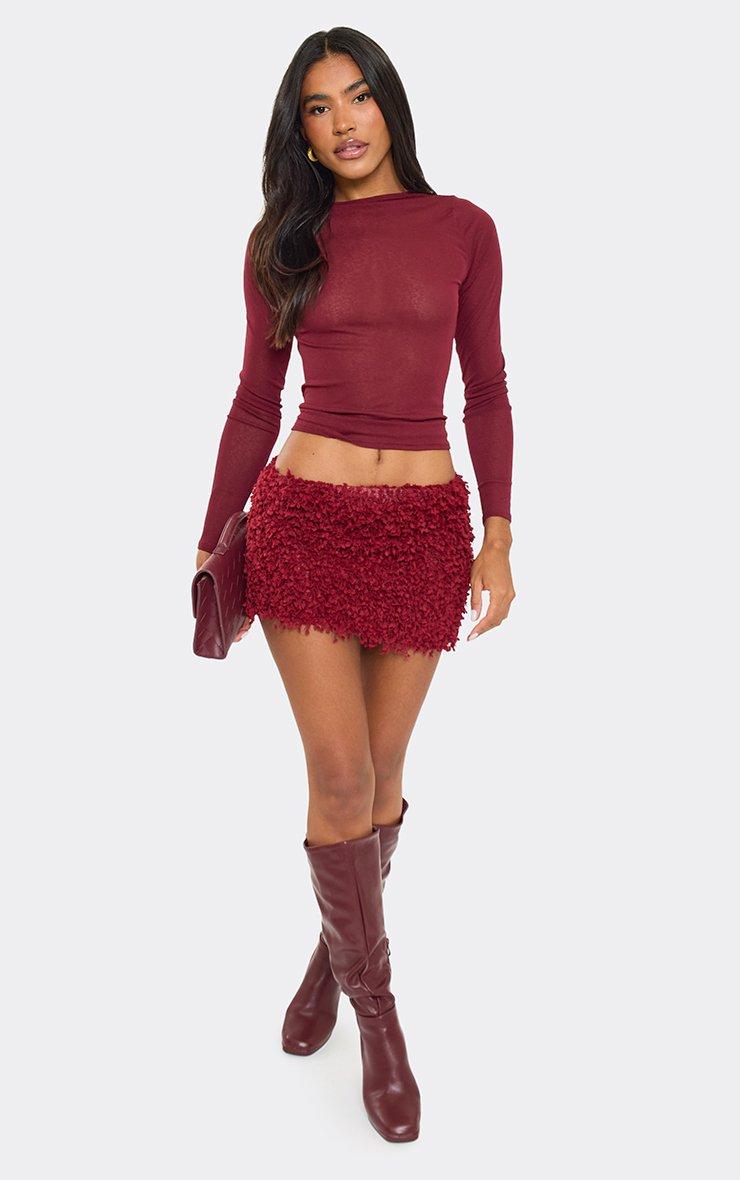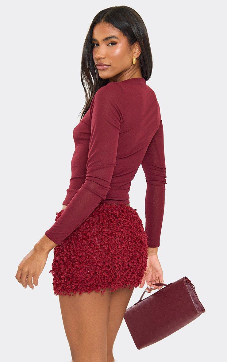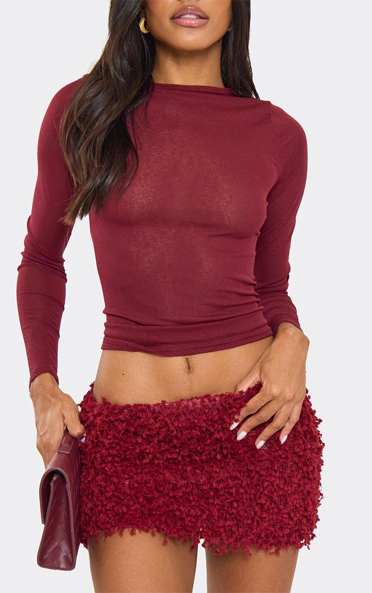 Long Sleeve Slashed Neck Top In Burgundy