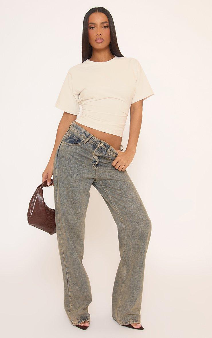 Slouchy One Shoulder Ruched Detail Top In Cream