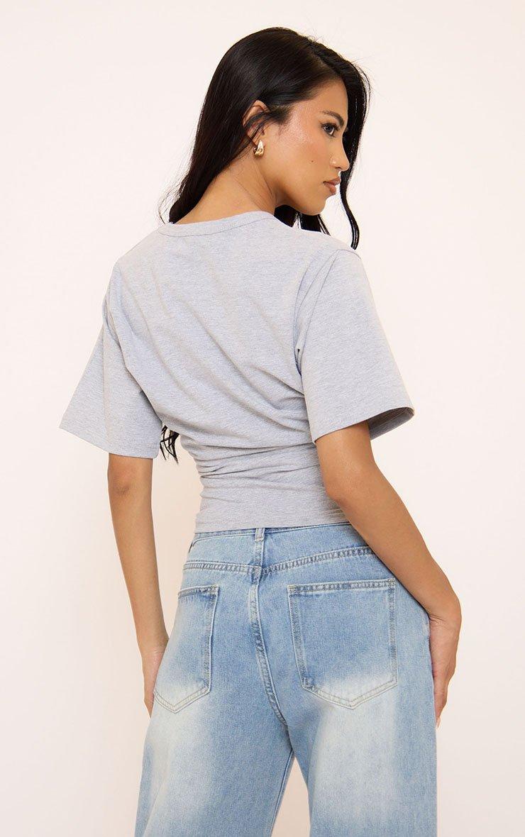 Short Sleeve Cinched Waist Fitted T-Shirt In Grey