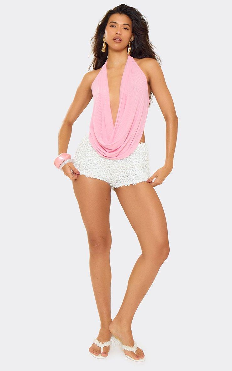 extreme cowl halterneck top in pink mesh