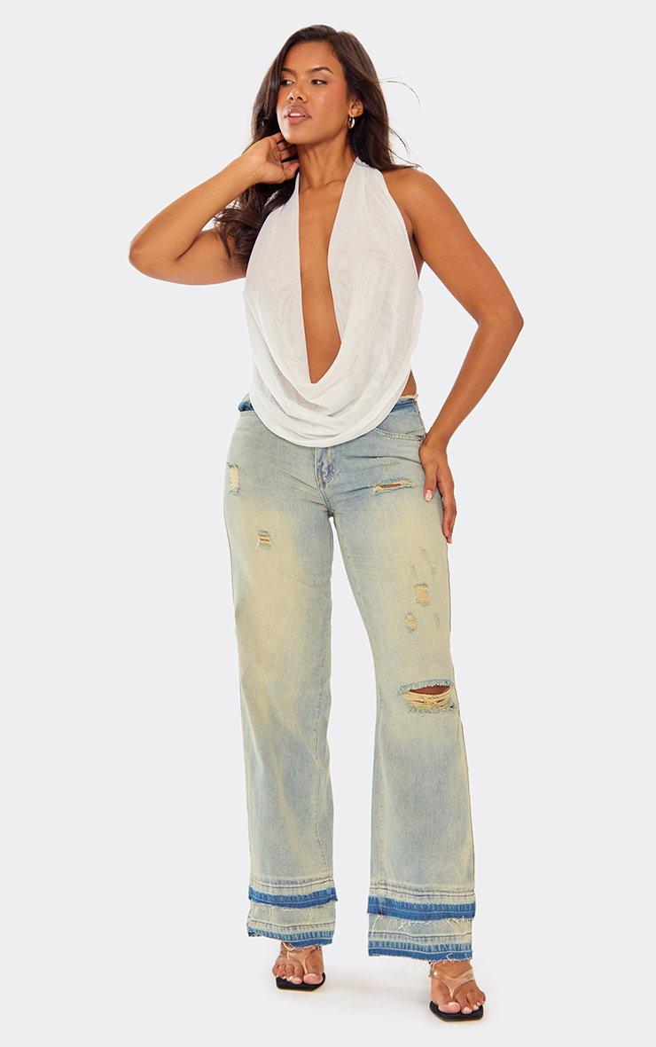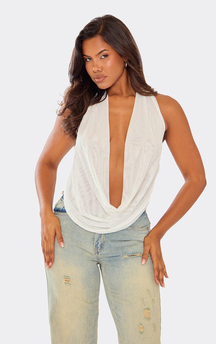 Extreme Cowl Halterneck Top In White Mesh