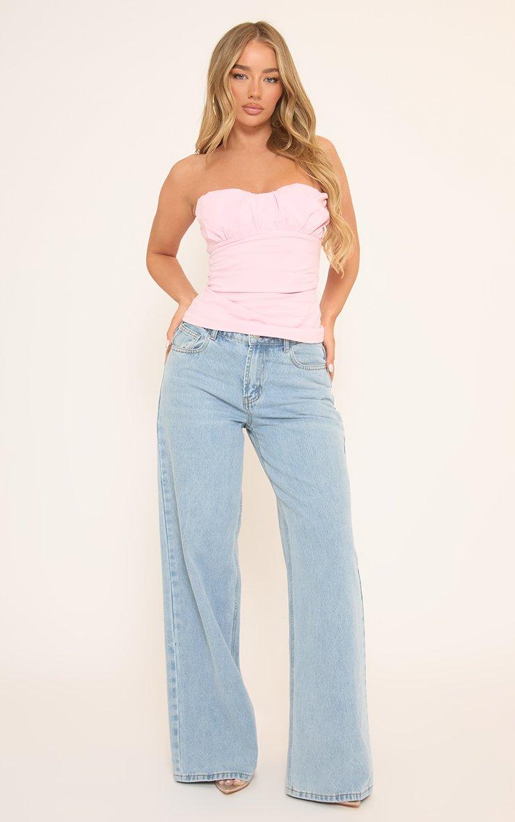 Bandeau Lace Up Back Frilled Hem Corset Top In Pink