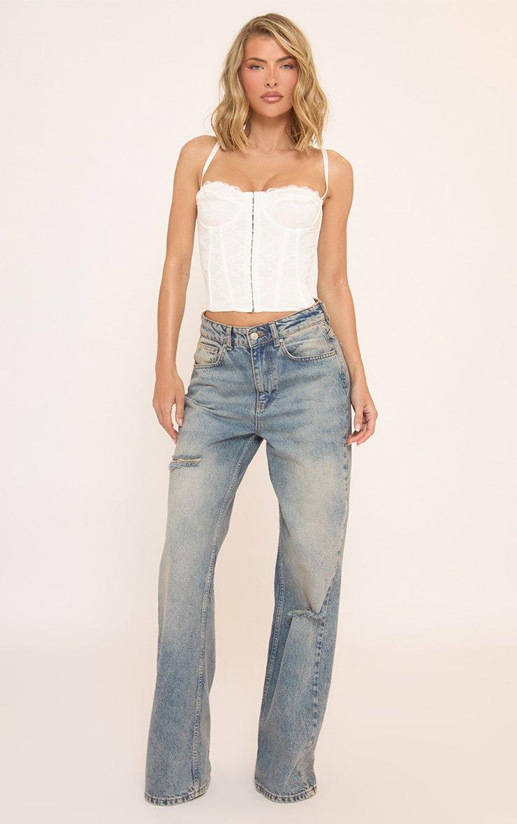 Hook And Eye Lace Up Back Detail Corset Top In White Lace