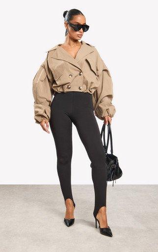Long Sleeve Cinched Waist Cropped Trench Coat In Beige