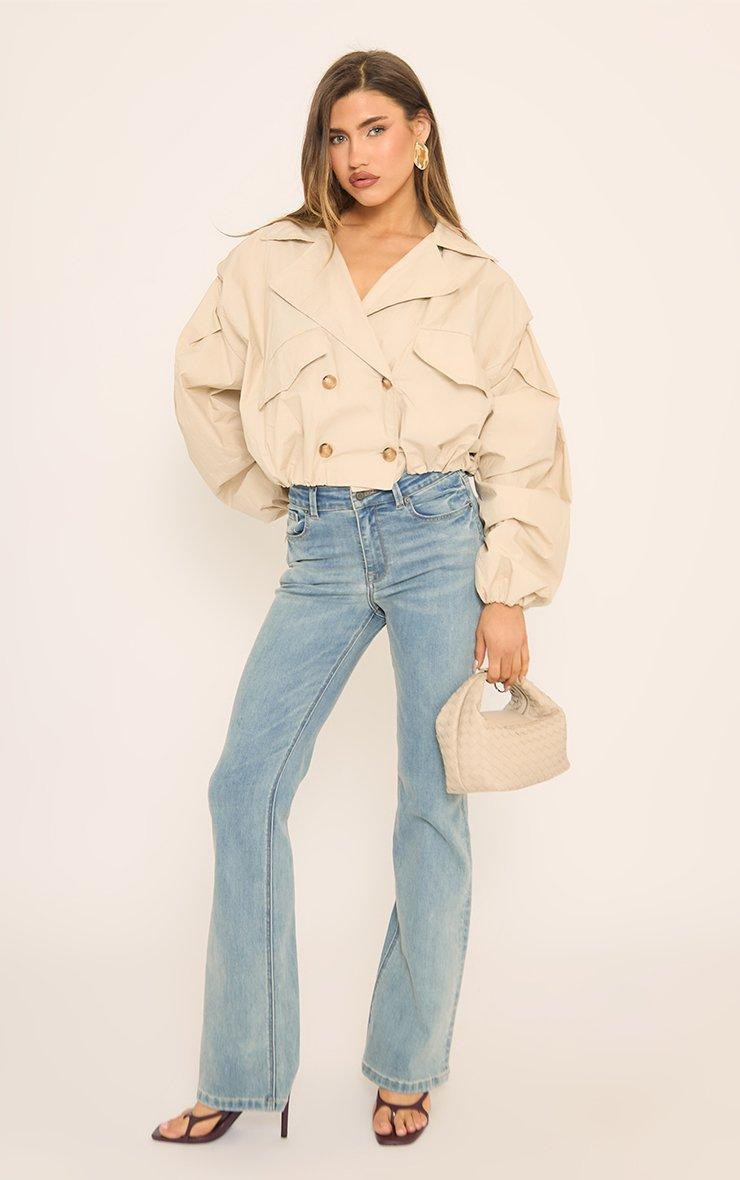 Long Sleeve Cinched Waist Cropped Trench Coat In Stone
