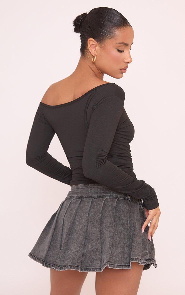 High Waist Contrast Stitch Detail Skort In Black Denim