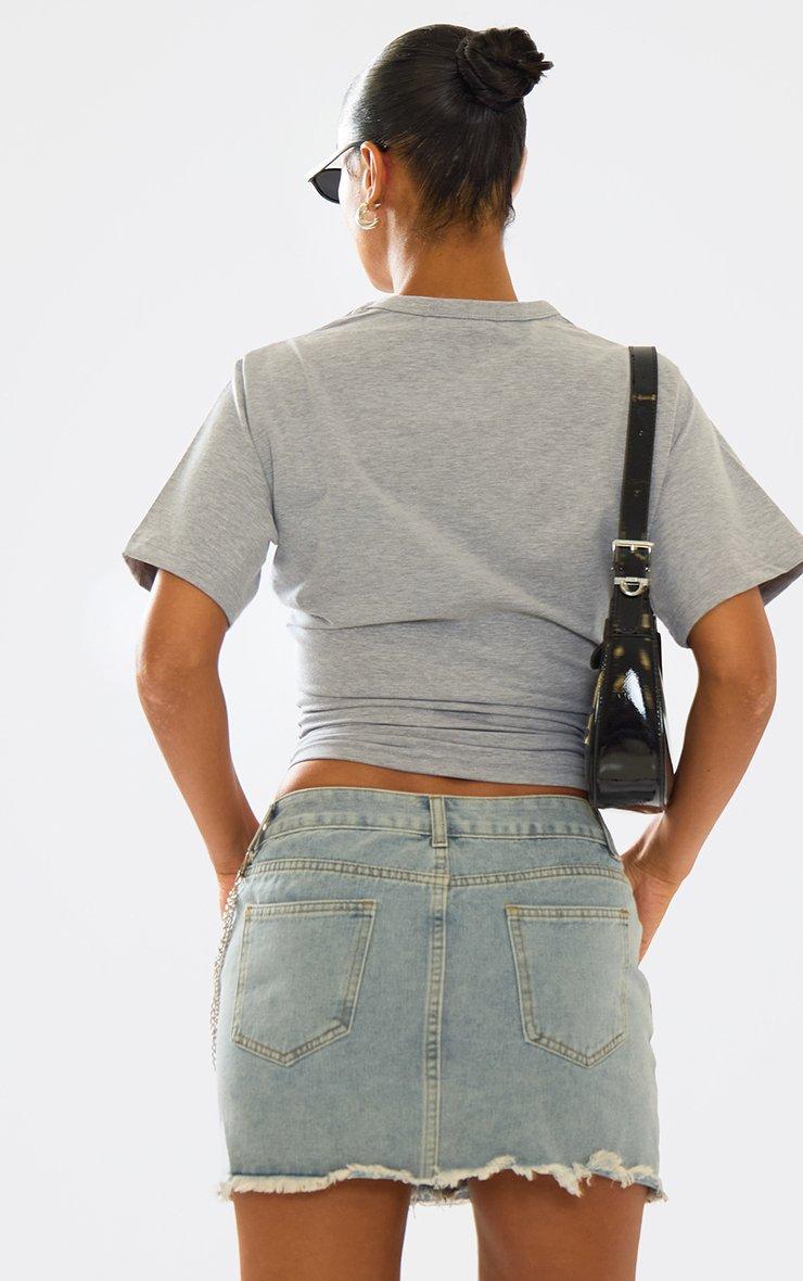 Low Rise Distressed Hem Detail Mini Skirt In Washed Blue Denim