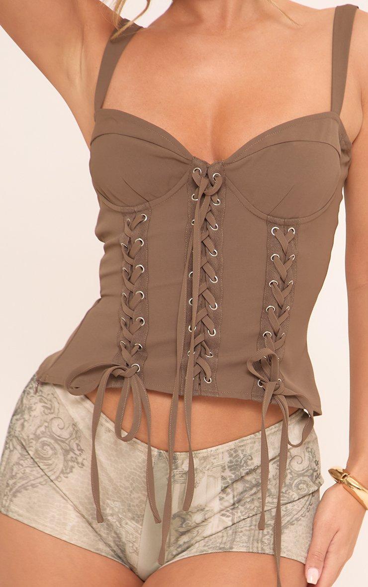 lace up front corset top in brown