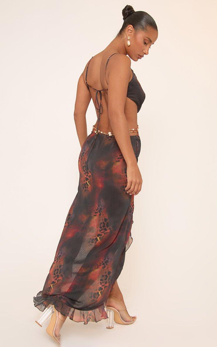 plunge neck beaded strap detail split front midaxi dress in multi print mesh
