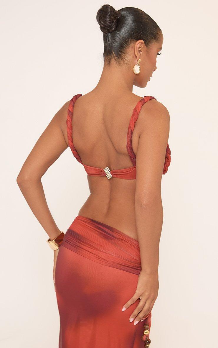 Foldover Ruched Waist Maxi Skirt In Rust Print