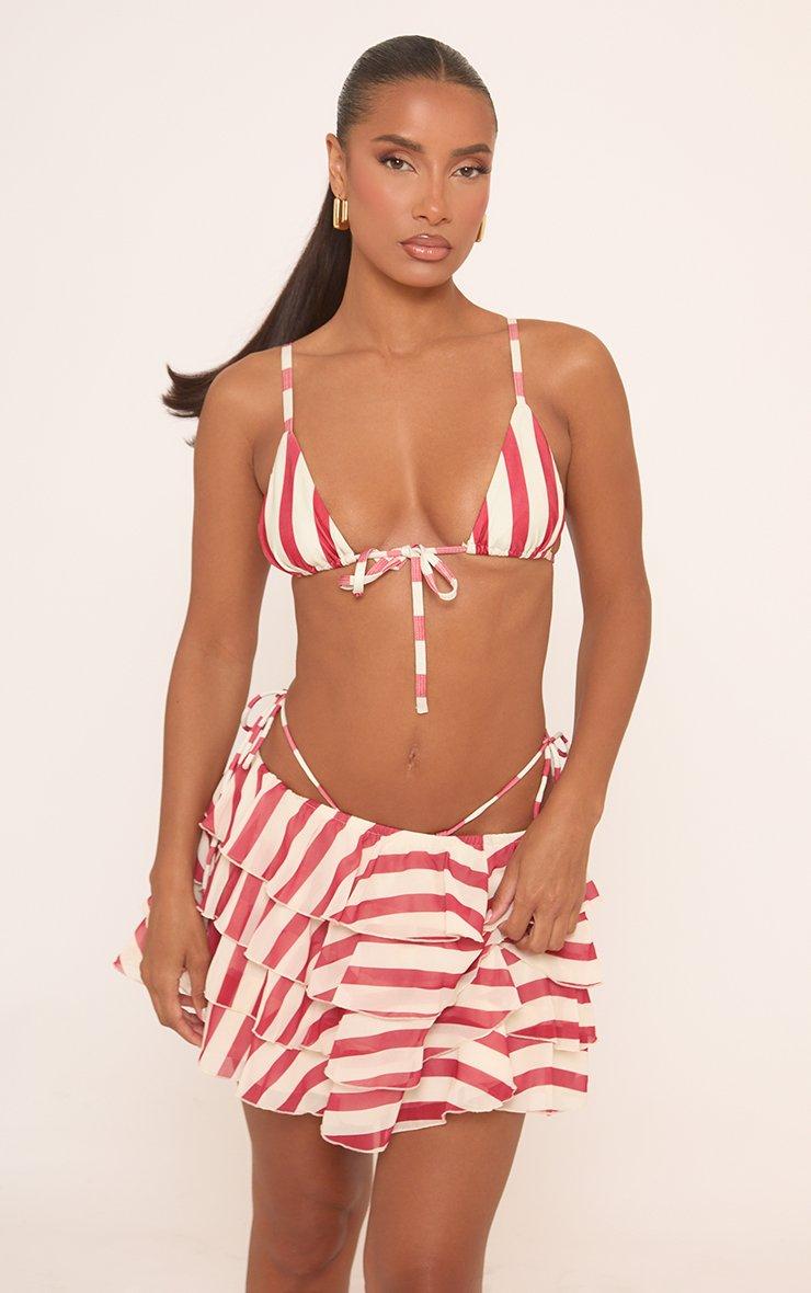 Low Waist Ruched Tie Side Mini Skirt In Red Gingham