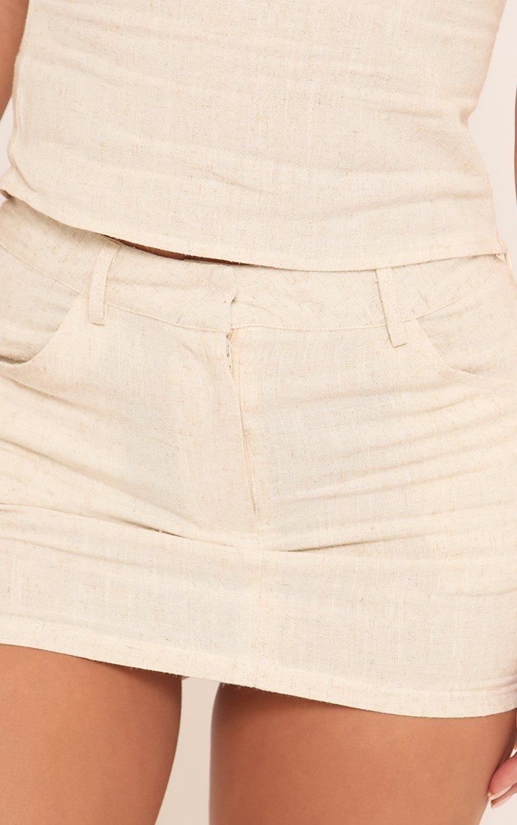 Low Rise Eyelet Detail Mini Skirt In Stone Faux Leather