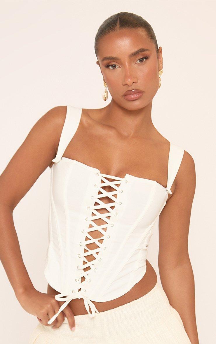 Square Neck Lace Up Front Detail Corset Top In White
