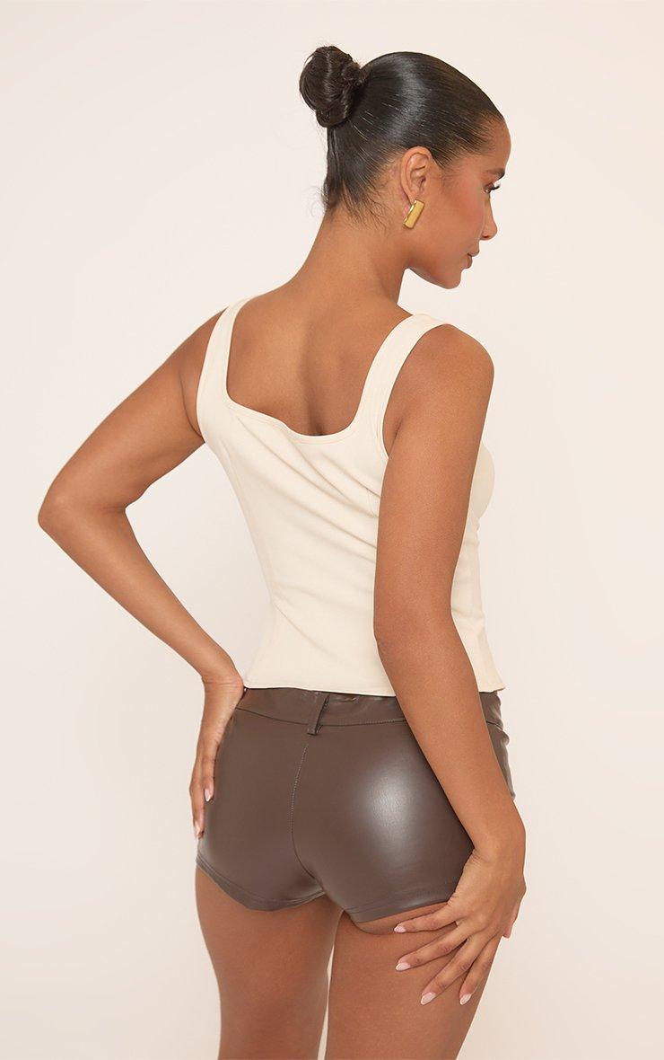 Sweetheart Neck Lace Up Front Tailored Top In Stone