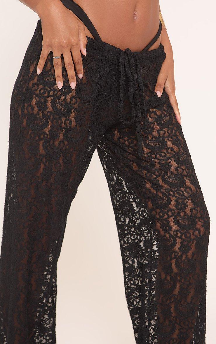 Low Rise Tie Side Beach Maxi Skirt In Black Lace