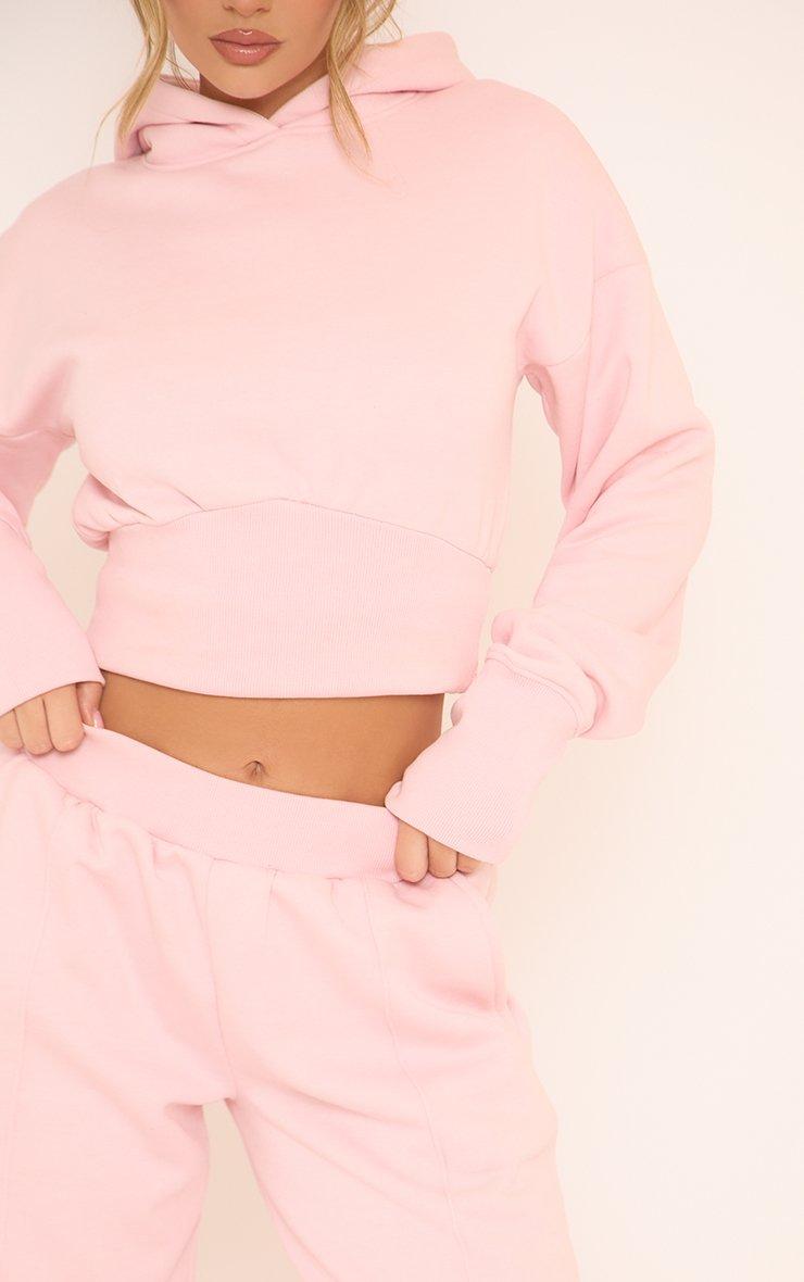 Long Sleeve Fitted Waist Cropped Hoodie In Pink