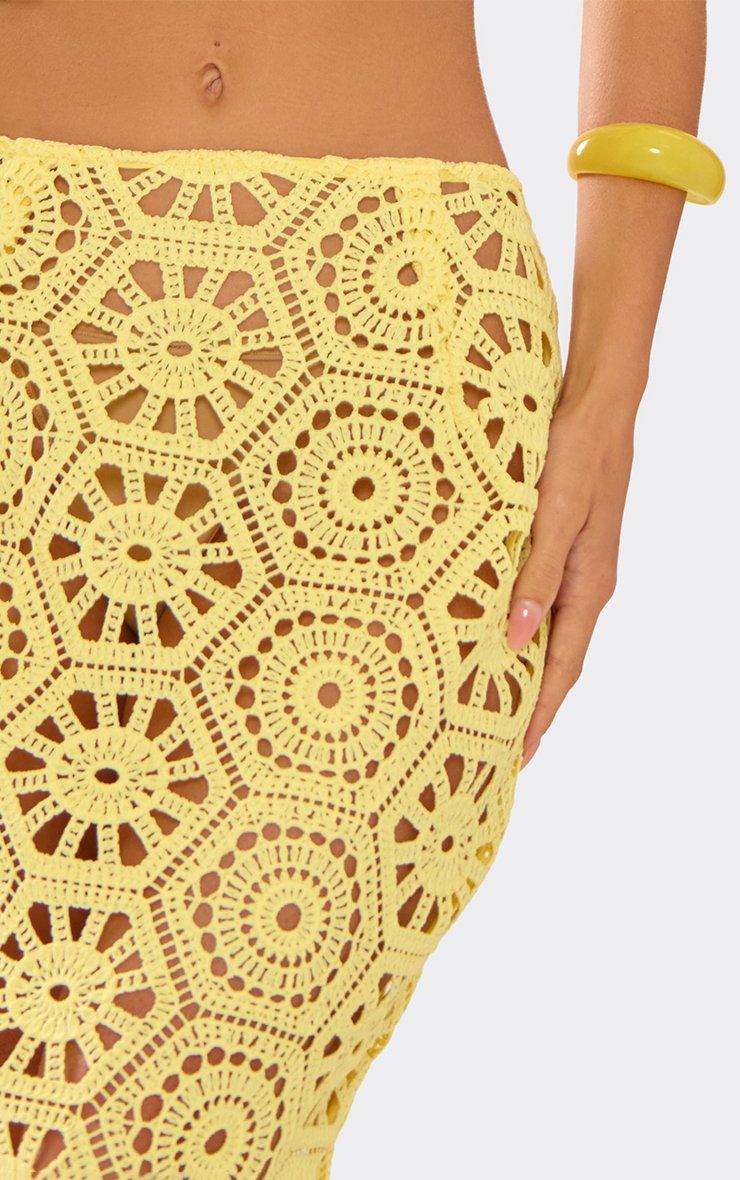 Low Waist Tie Side Flower Trim Detail Mini Sarong In Yellow Crochet