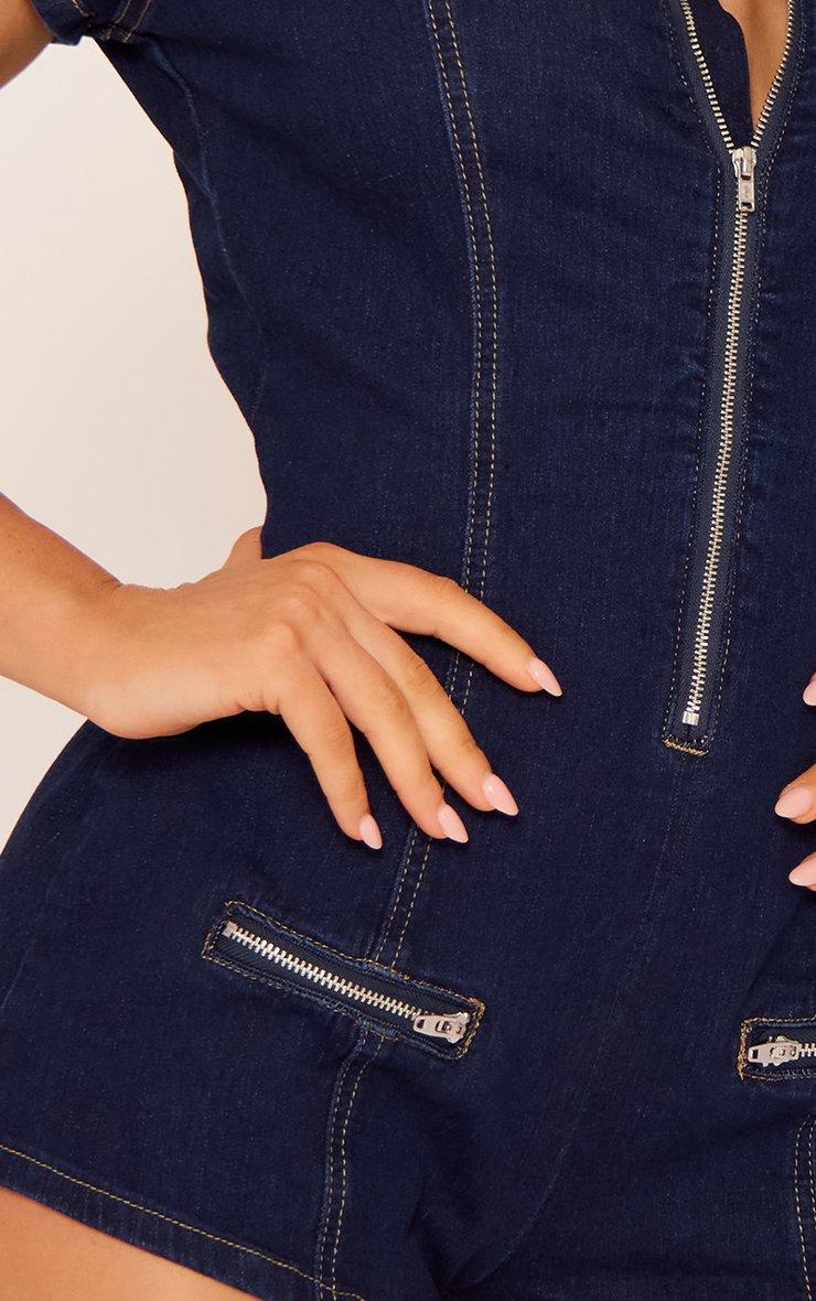 Short Sleeve Zip Up Front Fitted Playsuit In Indigo Blue Denim
