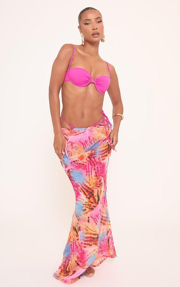 Low Rise Functional Tie Detail Maxi Skirt In Multi Abstract Print