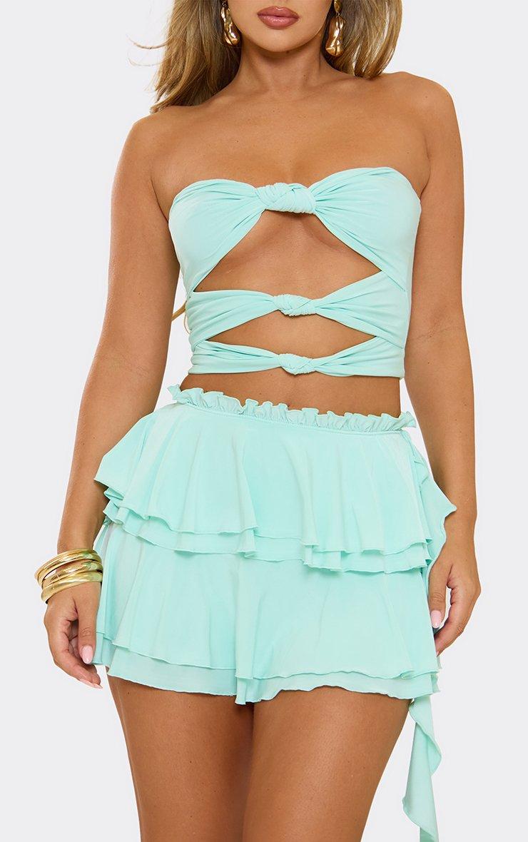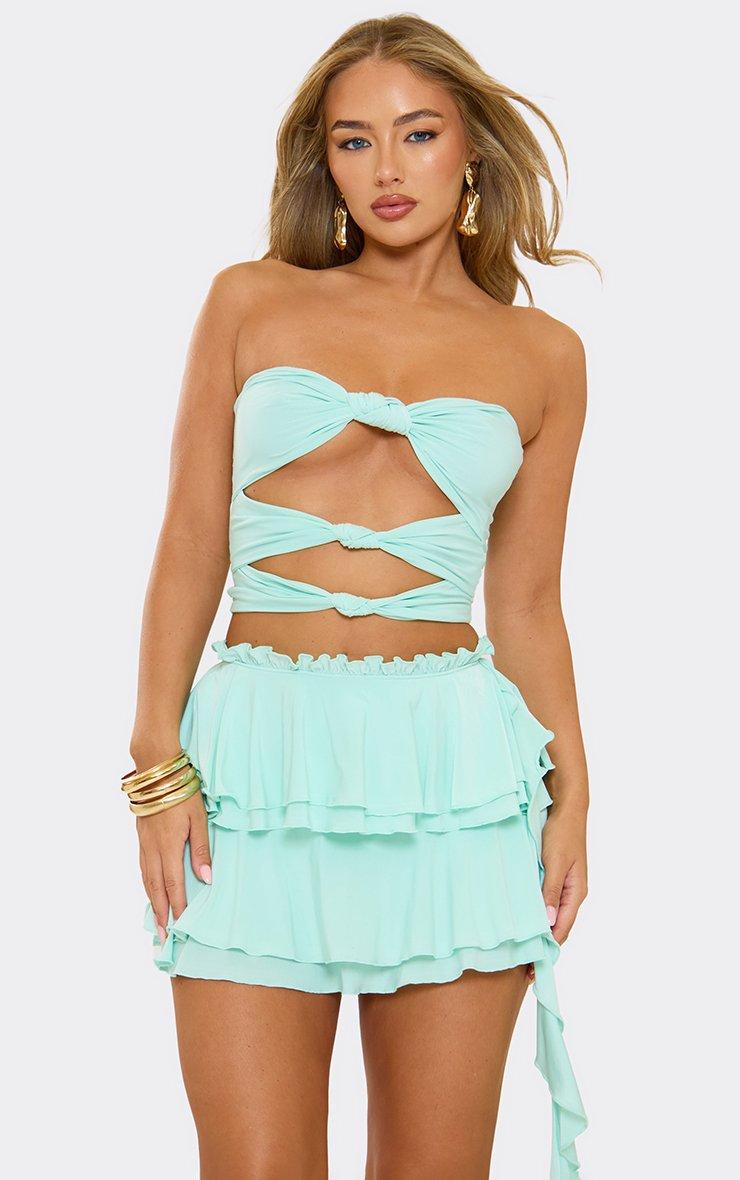 Bandeau Cut Out Knot Front Detail Crop Top In Blue