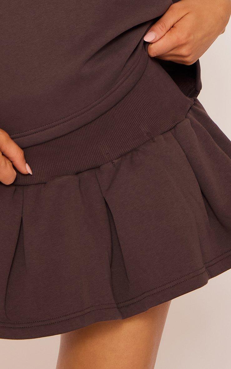 mid rise ribbed waistband detail pleated sweat mini skirt in brown