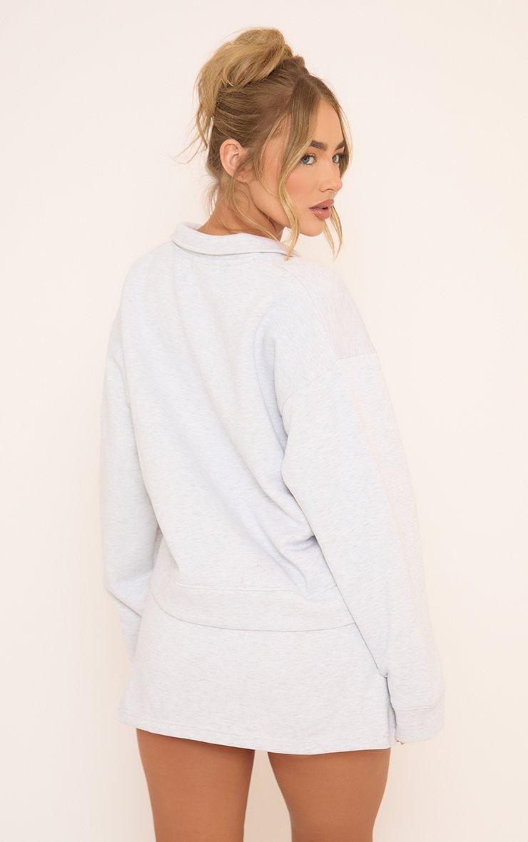 Long Sleeve Collared Polo Sweatshirt In Light Grey Marl