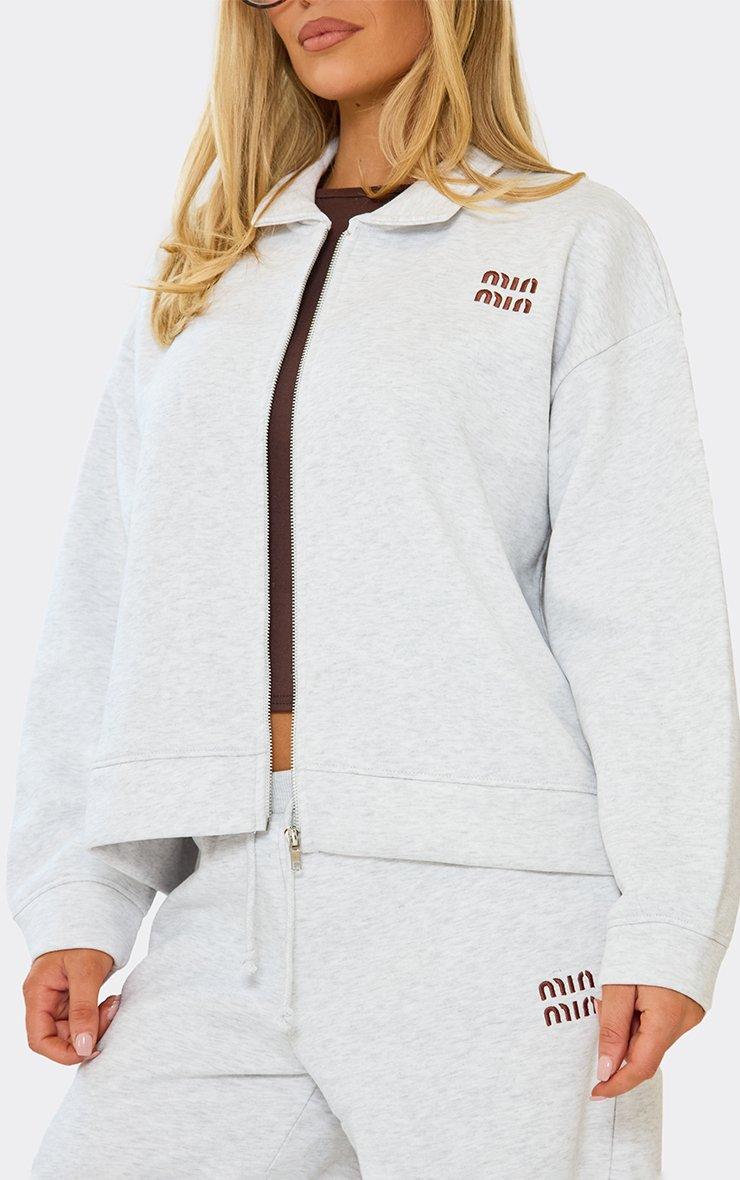 Long Sleeve 'Min Min' Detail Zip Up Front Collared Sweatshirt In Grey