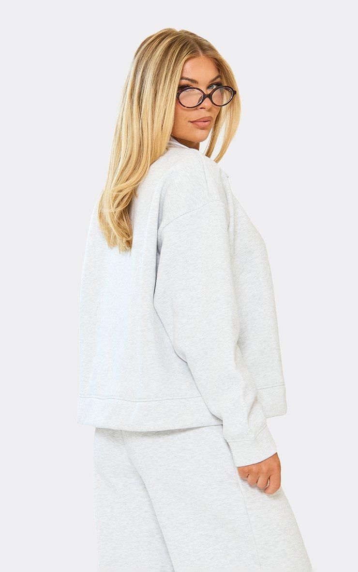 long sleeve 'min min' detail zip up front collared sweatshirt in grey