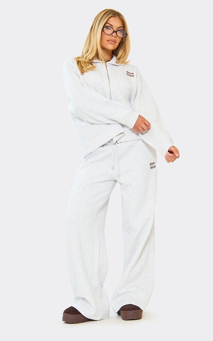 Mid Rise Pocket Detail Wide Leg Joggers In Light Grey Marl