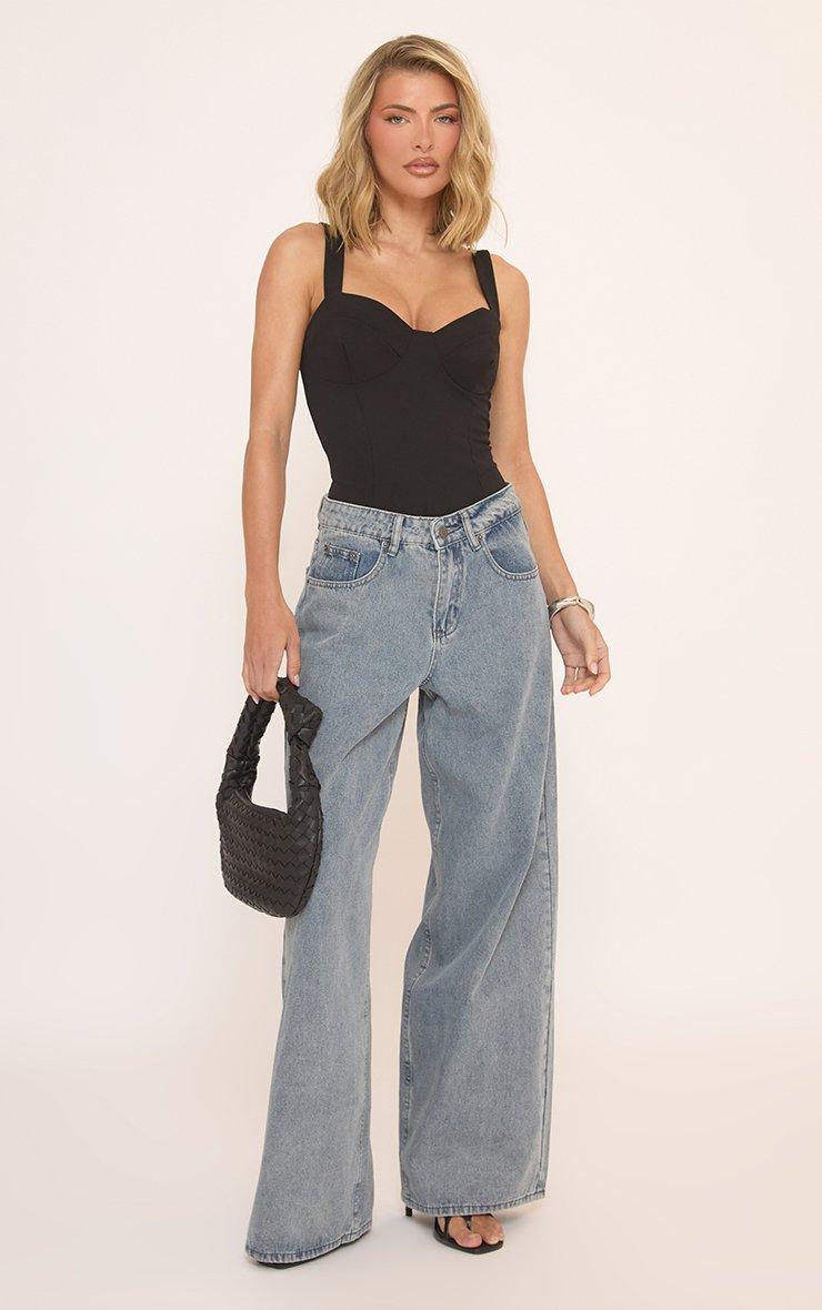 Bandeau Structured Tie Back Detail Corset Top In Black Lace