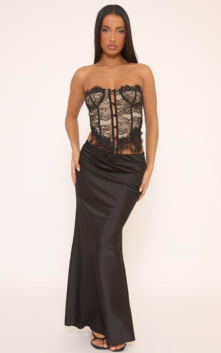 Mid Rise Bias Maxi Skirt In Black Satin