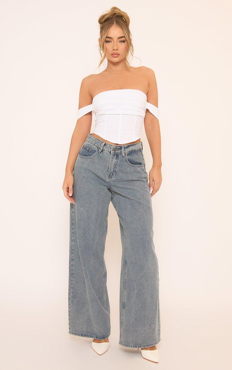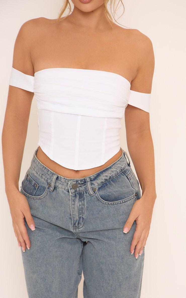 Bardot Pleated Bust Corset Top In White