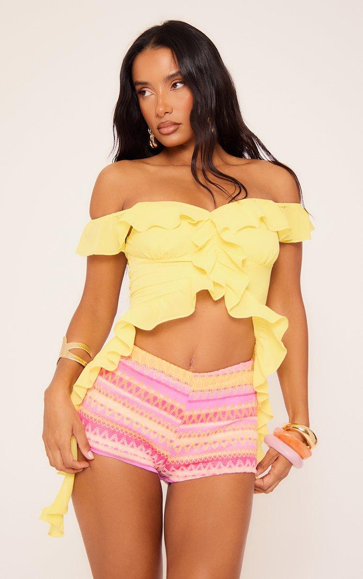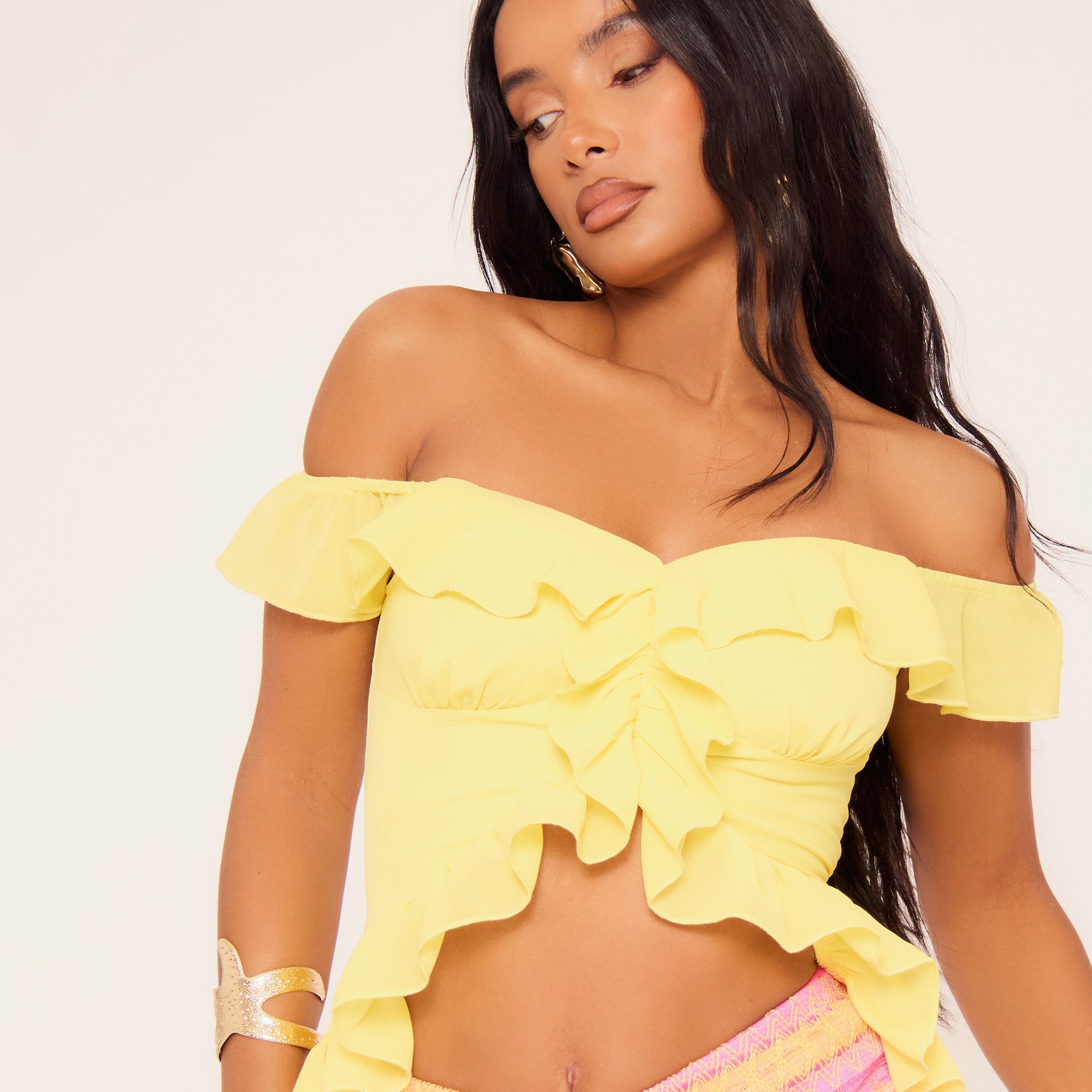 Off The Shoulder Ruffle Detail Top In Yellow
