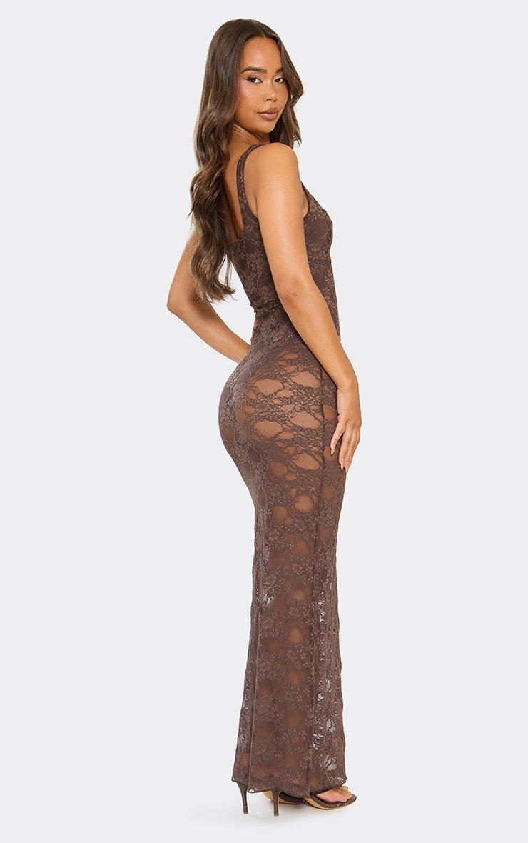 Scoop Neck Bodysuit Insert Maxi Dress In Brown Lace
