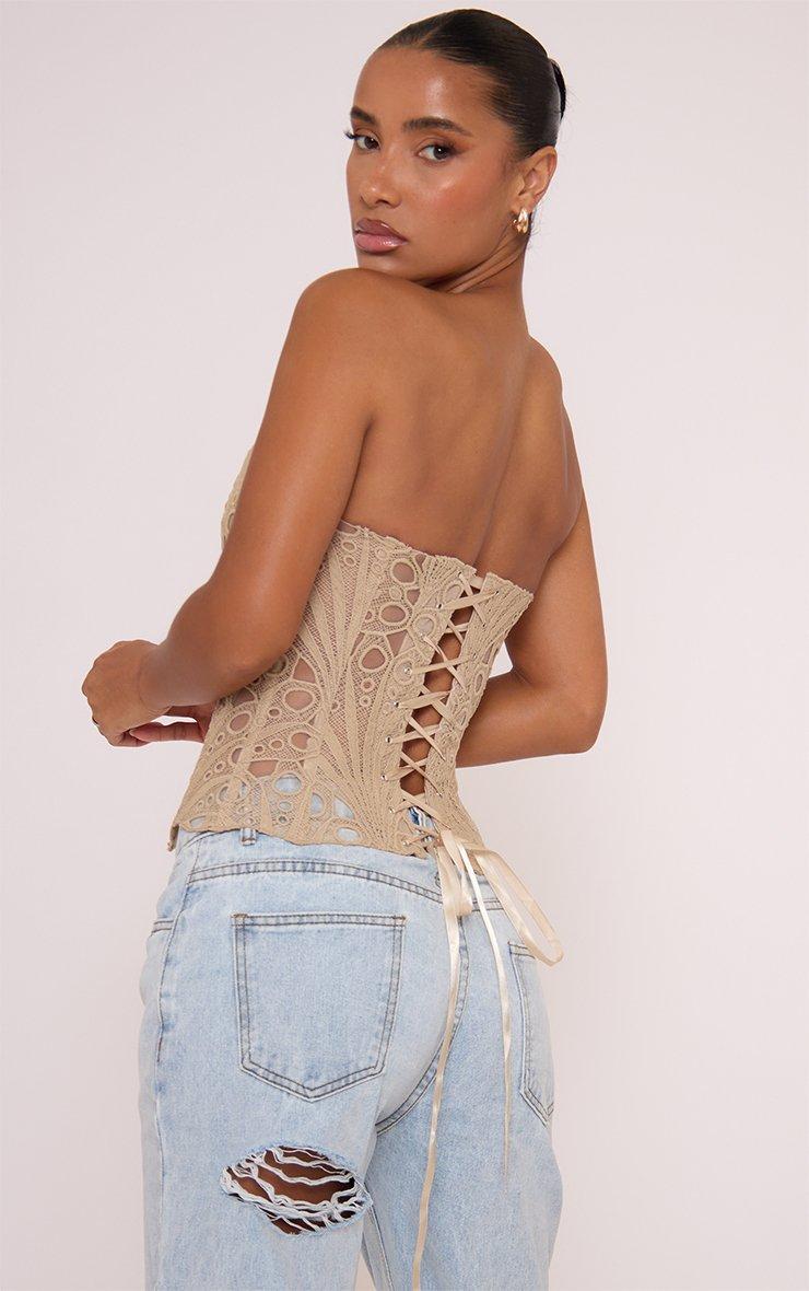 Bandeau Structured Tie Back Detail Corset Top In Black Lace