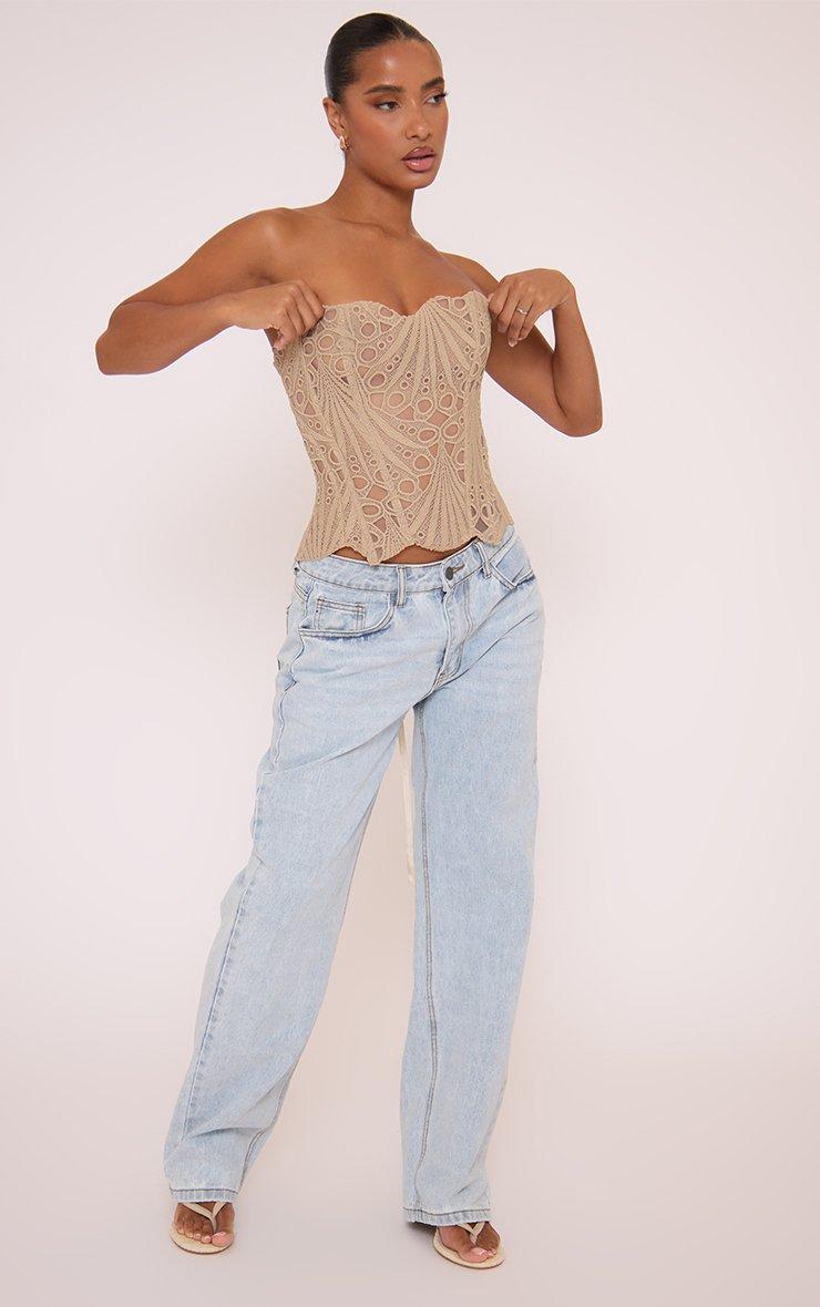 Bandeau Underwired Corset Top In Cream Lace