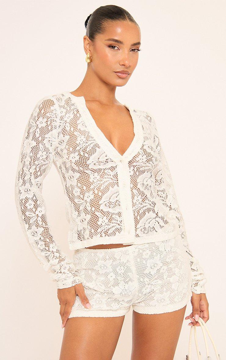 Low Rise Hot Pants In White Lace