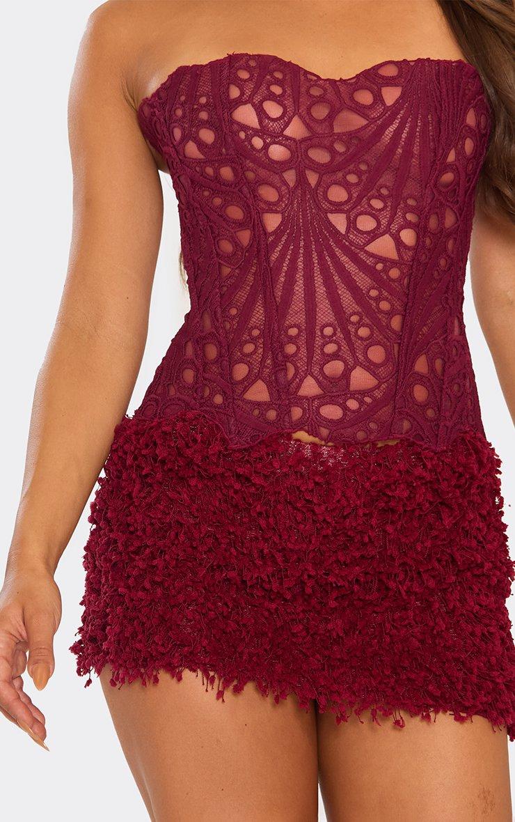 Mid Rise Mini Skirt In Burgundy Textured Sequin