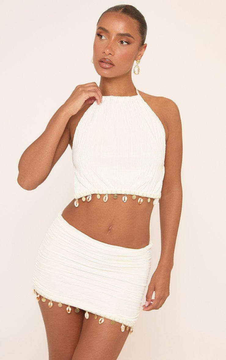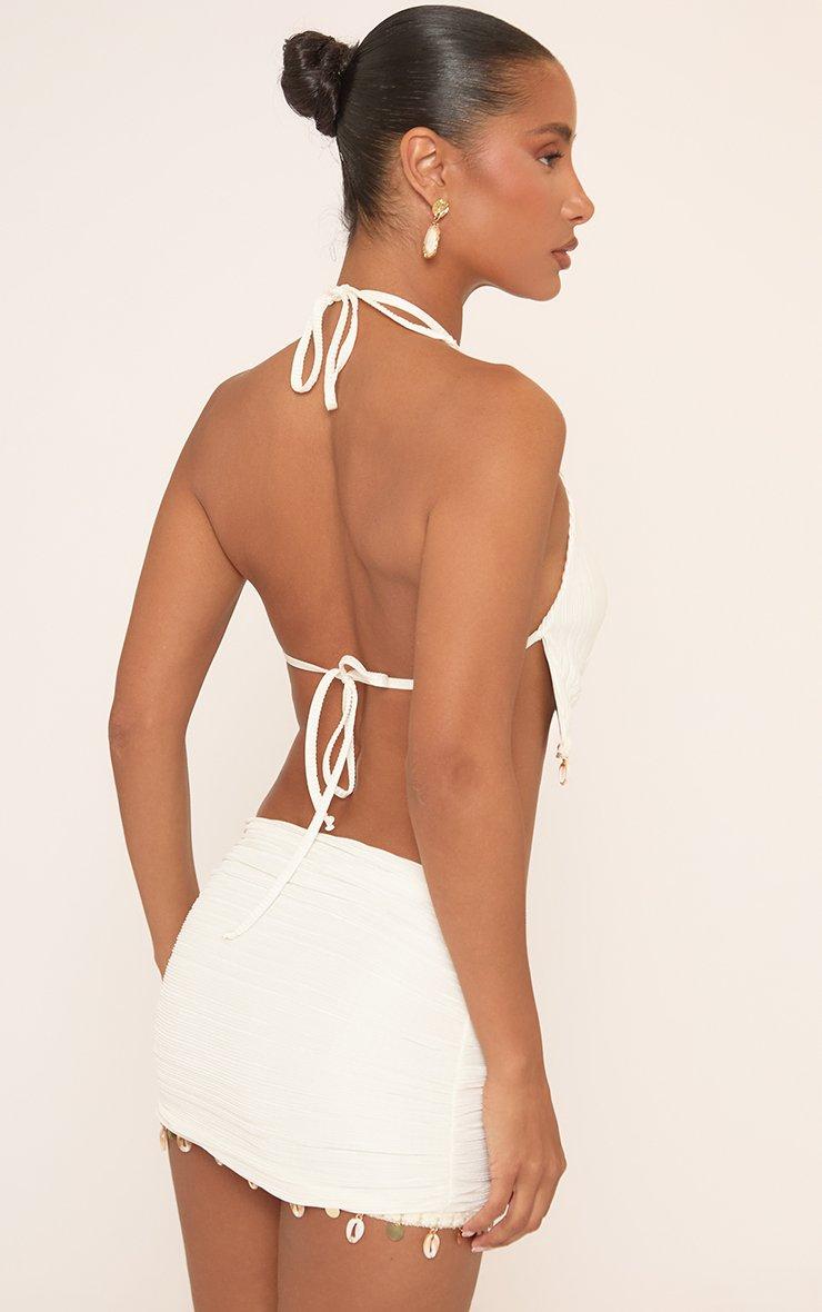 Ruched Waist Detail Ruffle Mini Skirt In White