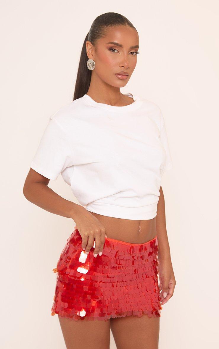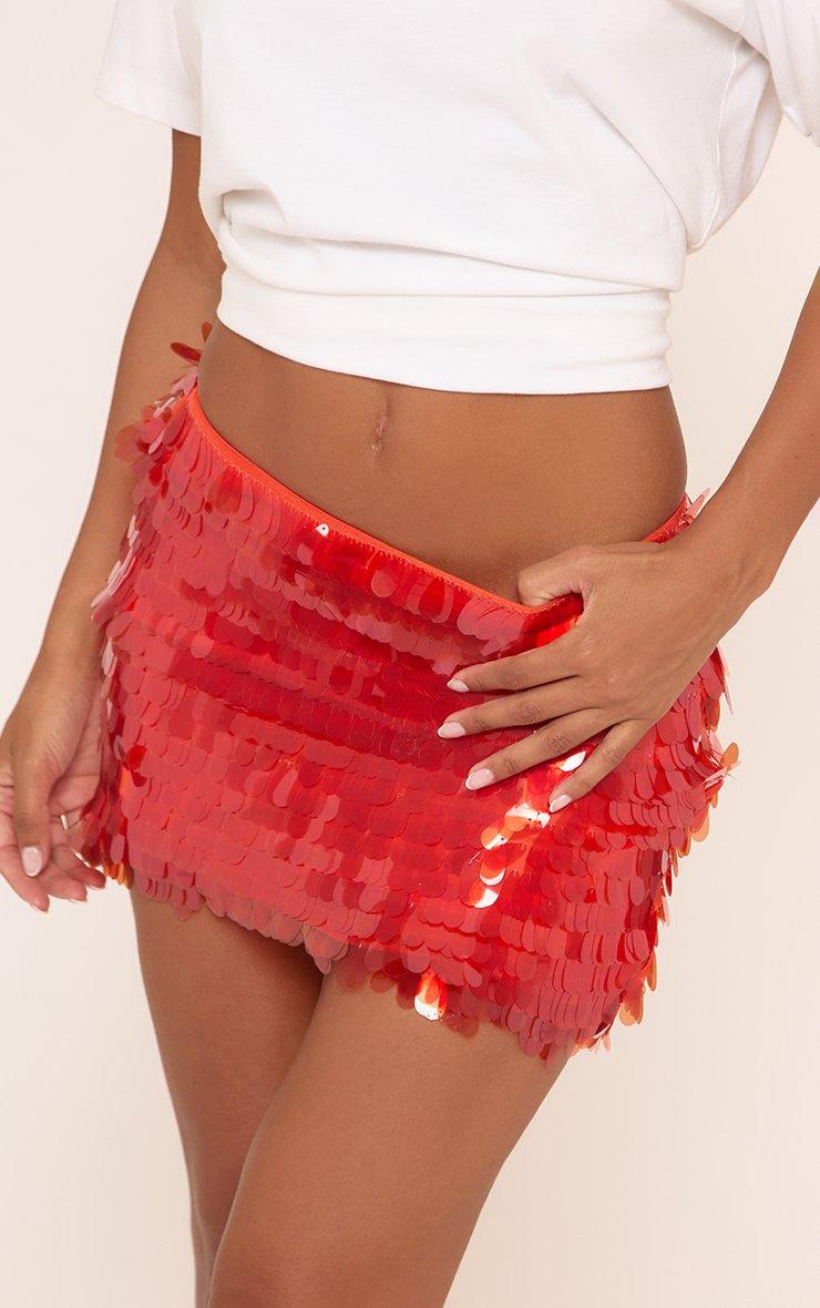 Mid Rise Mini Skirt In Red Large Disc Sequin